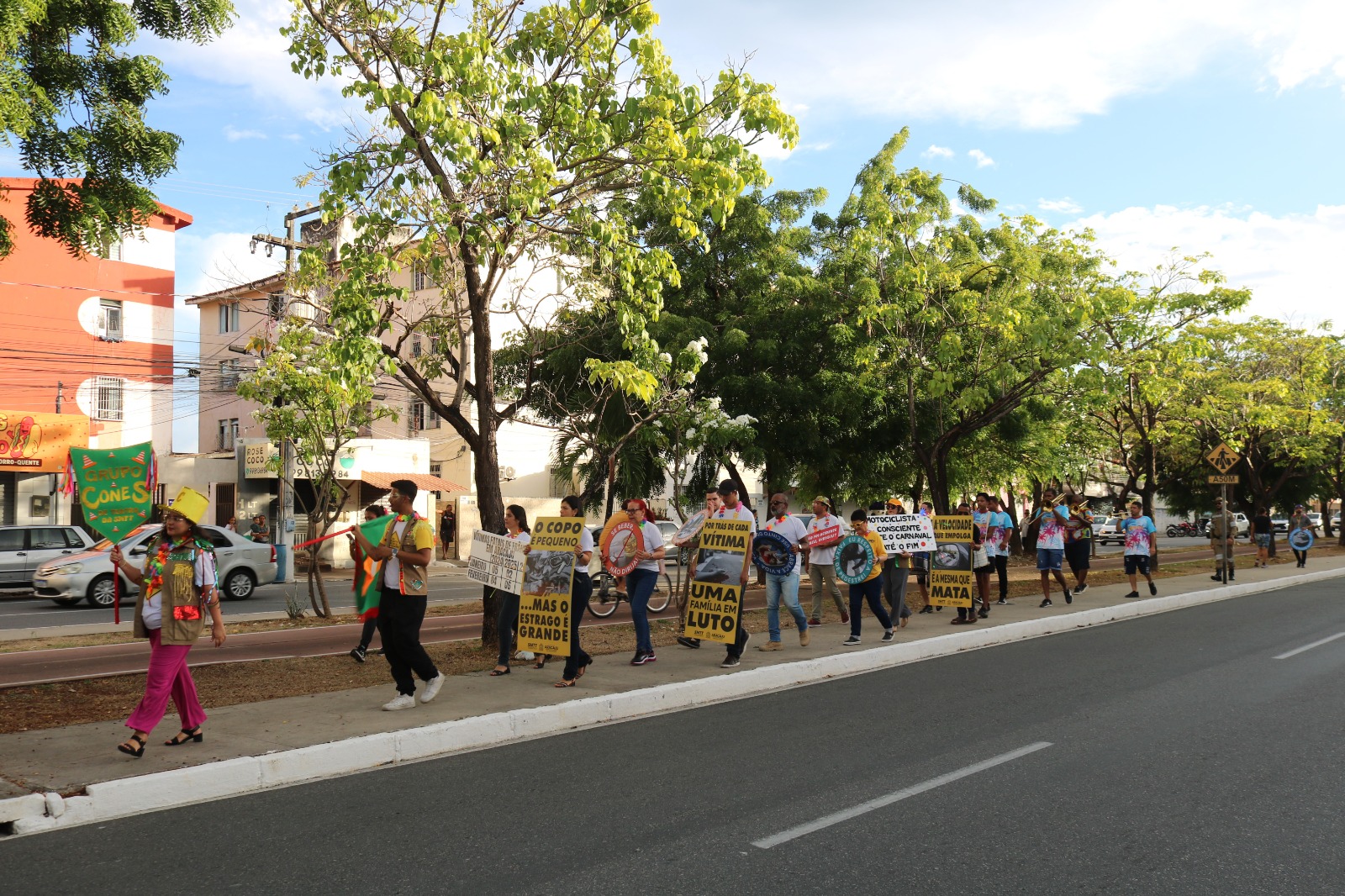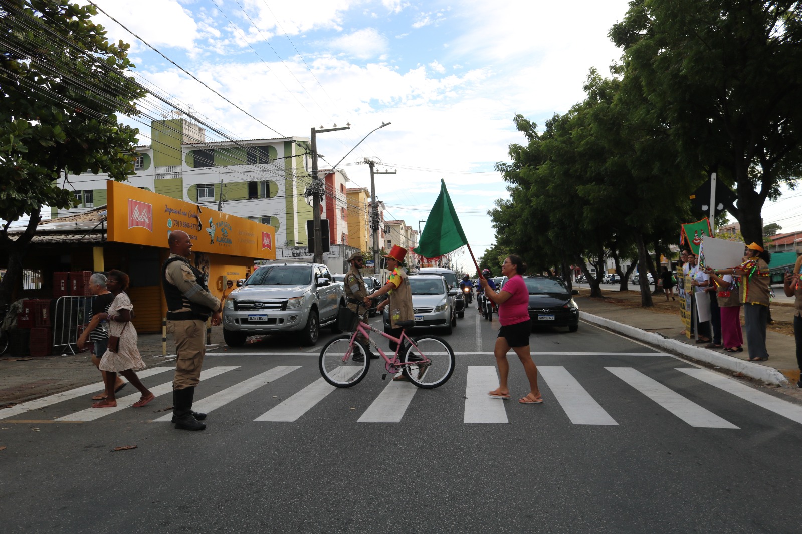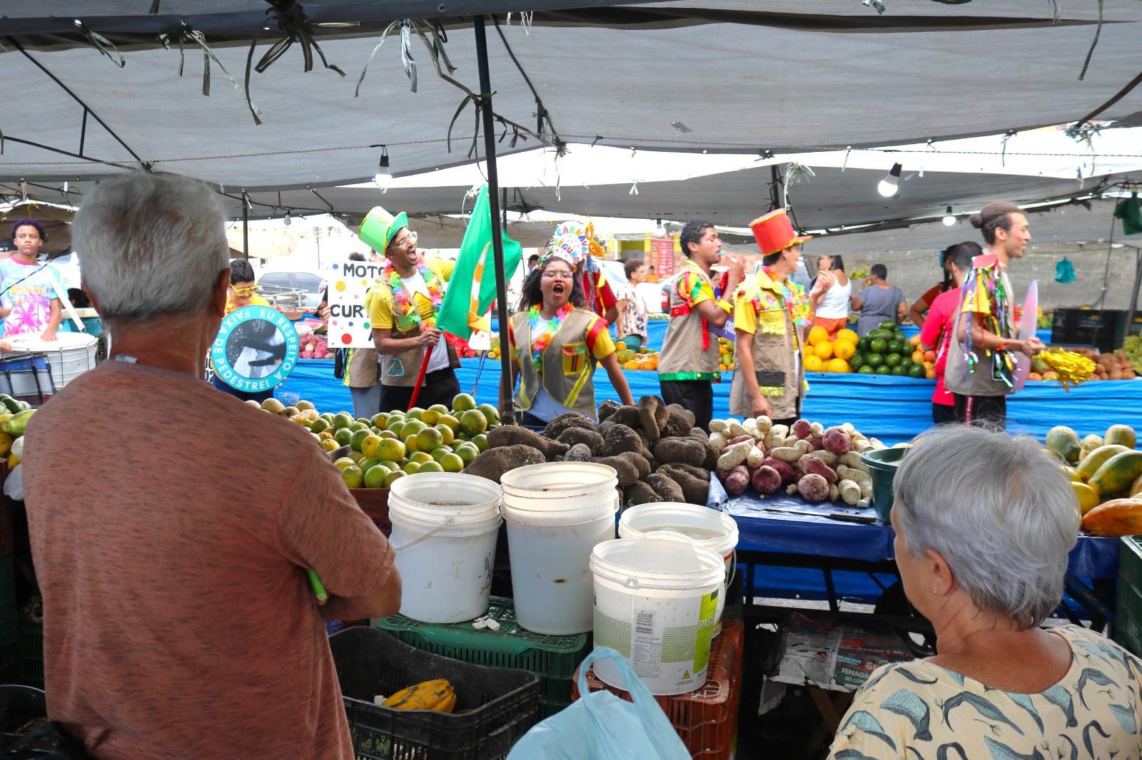 Quem esteve na feira do conjunto Augusto Franco, no bairro Farolândia, na tarde de quarta-feira, 10, testemunhou mais uma ação da Prefeitura de Aracaju voltada para a conscientização no trânsito. Através da Superintendência Municipal de Transportes e Trânsito (SMTT), a gestão municipal levou ao local o Grupo Cones de Teatro, da Coordenadoria de Educação para o Trânsito, com o seu “Bloco da Segurança”. Entre bancas e corredores movimentados, marchinhas carnavalescas e abordagens lúdicas chamaram a atenção de comerciantes, feirantes e frequentadores para a importância de atitudes responsáveis durante o período de festas.